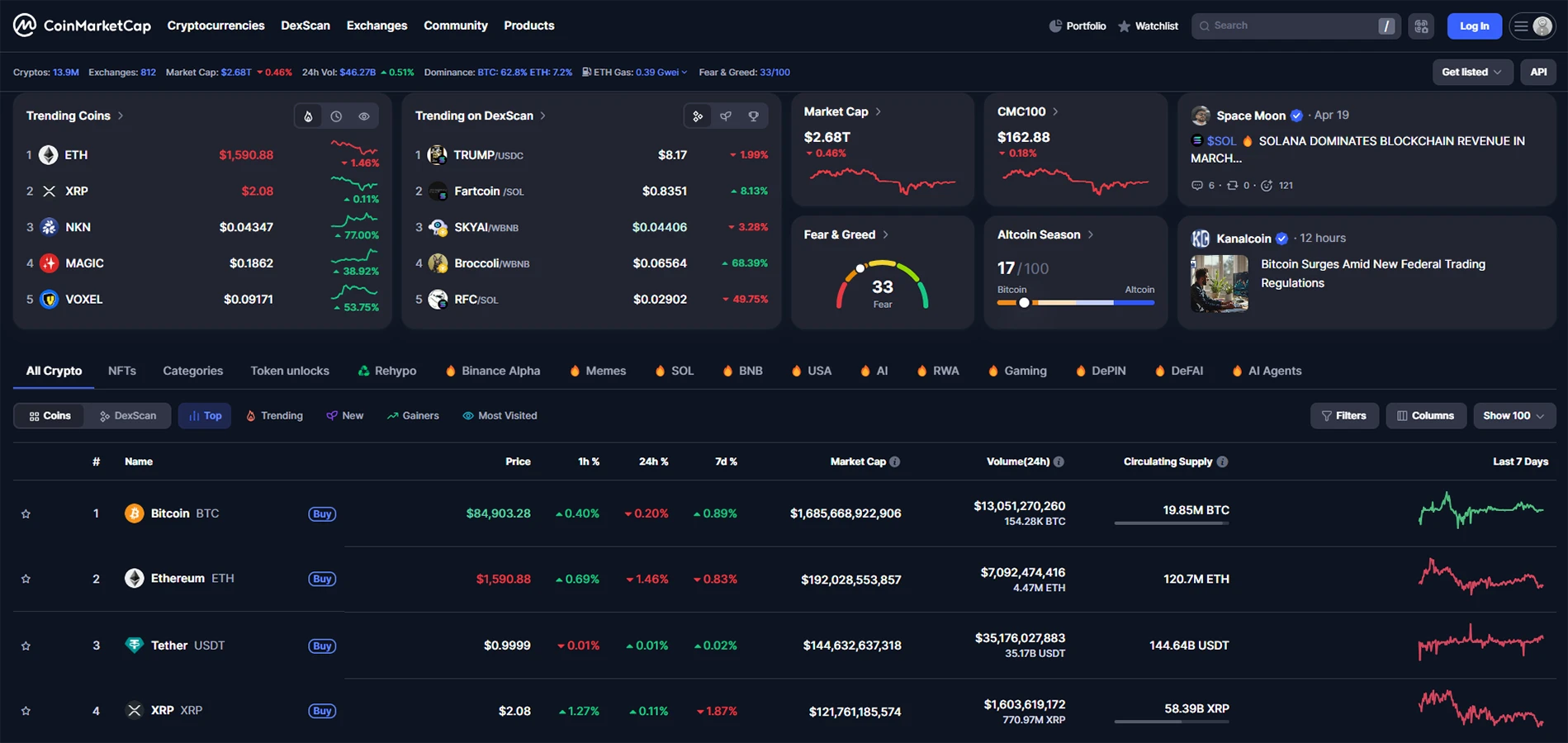 - CoinMarketCap: معتبرترین مرجع برای نمایش اطلاعات ارزهای دیجیتال، رتبهبندی، مارکت کپ و حجم معاملات